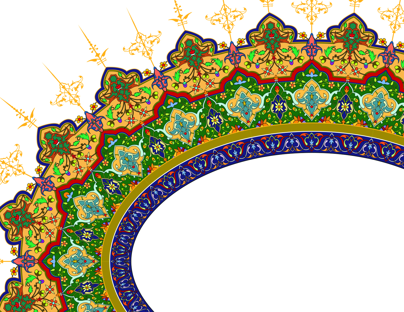 Beyond its decorative appeal, Arabesque geometry carries profound cultural and philosophical significance. Its development flourished during the Islamic Golden Age, a period marked by remarkable advancements in science, mathematics, and the arts. Scholars and artists explored geometry not only as a technical discipline but also as a means of reflecting spiritual ideas. Circles, stars, polygons, and tessellations were used to represent cosmic order and divine unity. The repetition of patterns without a clear beginning or end evokes the concept of infinity, inviting viewers to engage in contemplation and deeper reflection.