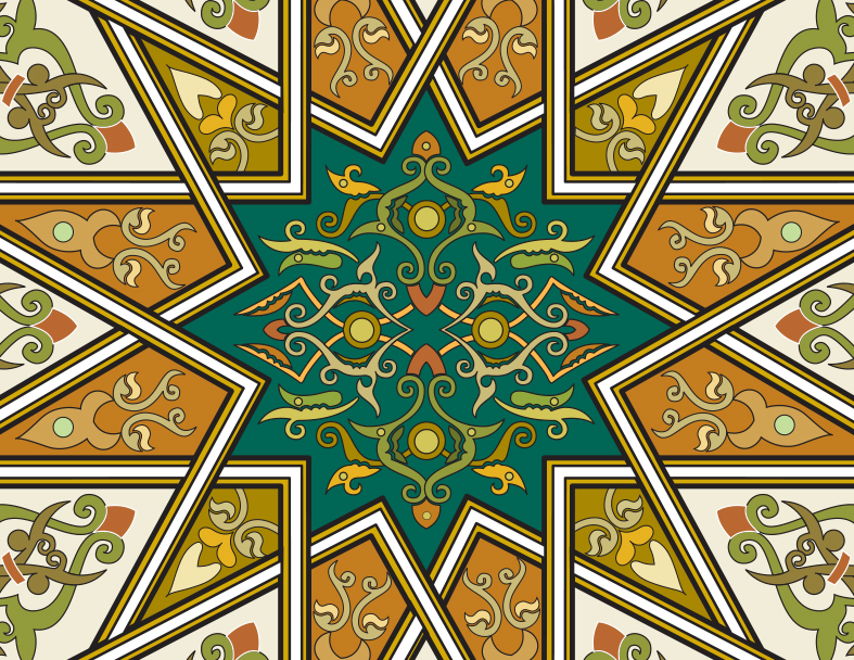Arabesque geometric patterns are among the most iconic expressions of Islamic art. They can be found adorning mosques, madrasas, palaces, manuscripts, ceramics, textiles, and intricate architectural surfaces throughout the Islamic world. These designs are grounded in mathematical precision and guided by a deep sense of balance and order. Rather than depicting human or animal figures—traditionally avoided in sacred Islamic contexts—this artistic tradition embraces abstraction as a means of expressing beauty. Through repeating motifs, radiating structures, and interconnected lines, Arabesque patterns create a continuous visual rhythm that symbolizes unity, harmony, and the infinite nature of existence.