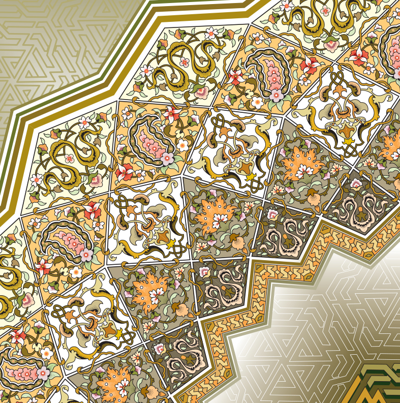 Beyond its decorative appeal, Arabesque geometry carries profound cultural and philosophical significance. Its development flourished during the Islamic Golden Age, a period marked by remarkable advancements in science, mathematics, and the arts. Scholars and artists explored geometry not only as a technical discipline but also as a means of reflecting spiritual ideas. Circles, stars, polygons, and tessellations were used to represent cosmic order and divine unity. The repetition of patterns without a clear beginning or end evokes the concept of infinity, inviting viewers to engage in contemplation and deeper reflection.