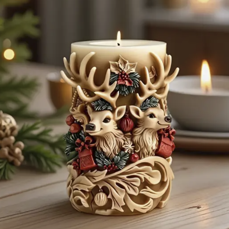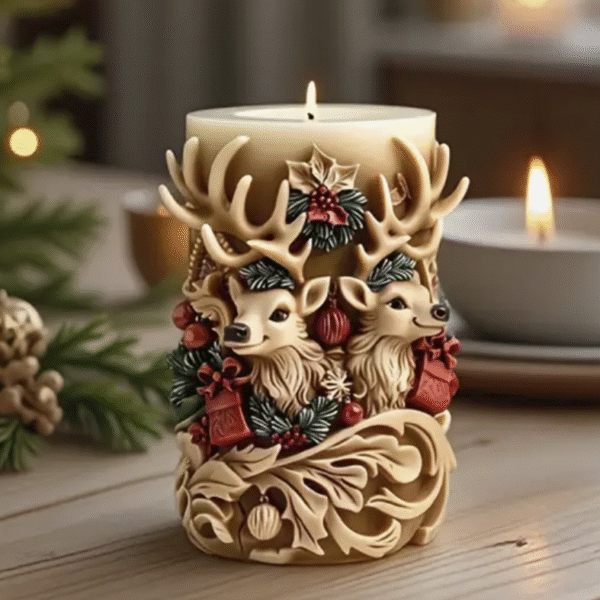 Christmas Embossed Double Deer Candle – An artistic candle crafted with elegance, infused with premium fragrance. A perfect keepsake and souvenir that blends beauty, aroma, and artistry.