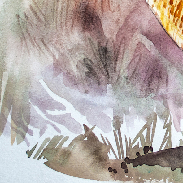 Desert Whisperer depicts the poised majesty of a desert creature—often symbolizing resilience, freedom, and harmony within the vast golden landscape. The painting’s composition reflects the delicate balance between the natural environment and its noble inhabitants, highlighting movement, presence, and emotional depth.