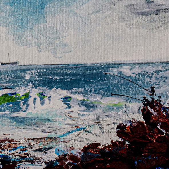 The painting features a soothing combination of ocean blues, sandy beiges, muted browns, soft whites, and warm coastal tones. These colors blend beautifully to evoke both sea and shore, creating an atmosphere of balance and ease. The palette works effortlessly with coastal décor, rustic interiors, Arabic-inspired themes, modern minimalism, and natural-toned rooms.