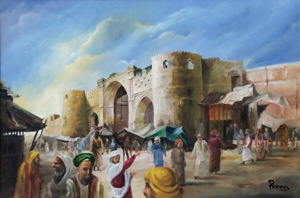 Rather than replicating every stone with photographic precision, the painting celebrates the spirit, symbolism, and cultural depth embedded in the gate. It evokes the reverence of pilgrims, the centuries of tradition, and the timeless beauty of Islamic architectural identity. This piece becomes more than art—it becomes a storytelling window into a cherished past.