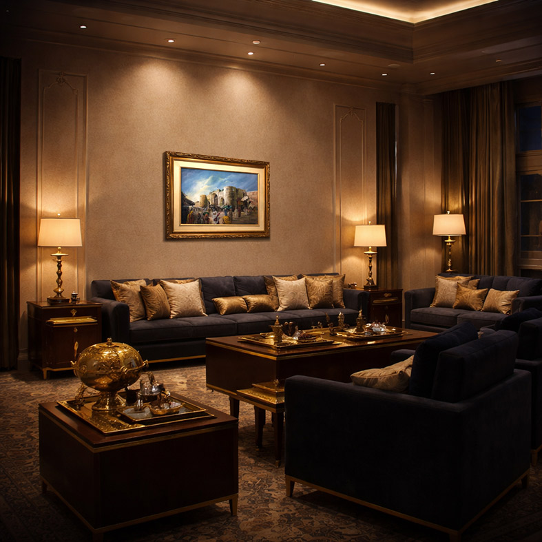 “Gateway to the Past – Macca Gate 1856” seamlessly blends history with contemporary artistic style, making it a striking addition to modern interiors seeking meaning, culture, and elegance. Whether displayed in a living room, office, study, or prayer area, the painting creates a powerful atmosphere, serving as a reminder of heritage, faith, and the beauty of Islamic history. Its balanced composition and timeless subject matter make it suitable for both minimal and traditional décor themes.