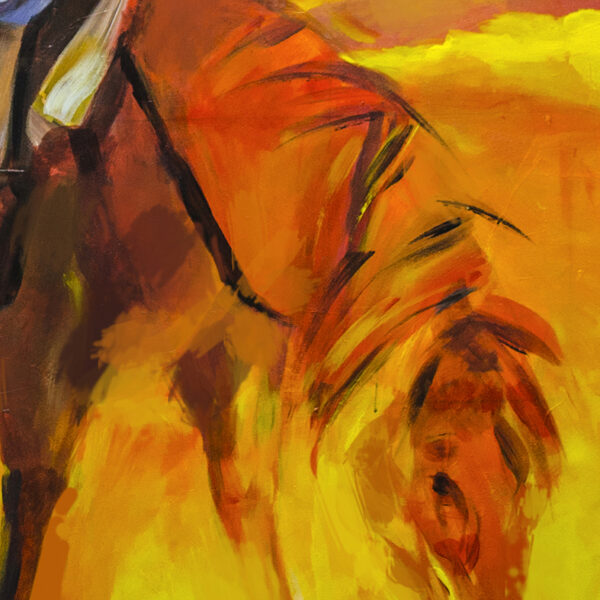 Each printing method brings out different aspects of the composition, from the dynamic movement to the horse’s vivid colors.