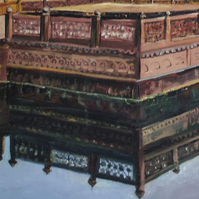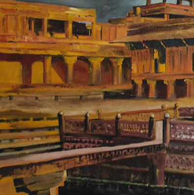 ‘Timeless Echoes of Fatehpur Sikri’: Step into the grandeur of history with Timeless Echoes of Fatehpur Sikri, a stunning oil painting that captures the majestic beauty of the Mughal-era architectural marvel. The rich ochre and red sandstone structures stand in striking contrast against a dramatic sky, where dark clouds hint at the passage of time and the stories whispered through the ages. The tranquil reflection in the water adds depth and symmetry, creating a mesmerizing interplay between past and present. This masterpiece beautifully encapsulates the soul of Fatehpur Sikri, making it a captivating centerpiece for lovers of history, art, and culture.