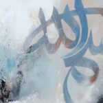 Whispers of the Divine, a contemporary Arabic calligraphy painting, blends tradition with modern expression. The intricate script dances across the textured canvas, each stroke imbued with depth and emotion. The textured layers evoke a sense of movement and life, while the calligraphic form speaks to the timeless beauty of Arabic letters. The contrast between the smooth elegance of the script and the tactile roughness of the surface invites the viewer to experience the harmony between the sacred and the material world.