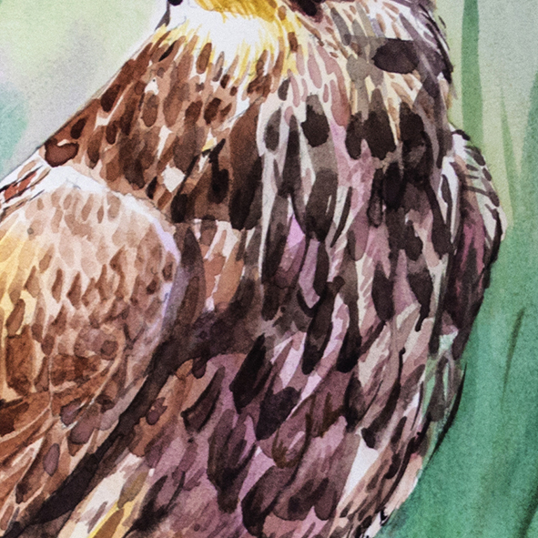Through captivating detail and lifelike textures, the artwork immerses the viewer in the falcon’s swift and calculated motion. Every feather is thoughtfully crafted, creating a sense of movement that feels alive and electrifying. The bird’s wings expand with grace and power, giving the piece a luxurious sense of motion and strength.
